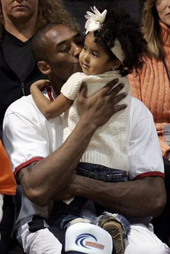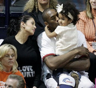 A tu Kobe Bryant ( gwiazda Lakers ) z żoną Vanessą i córką Natalią.